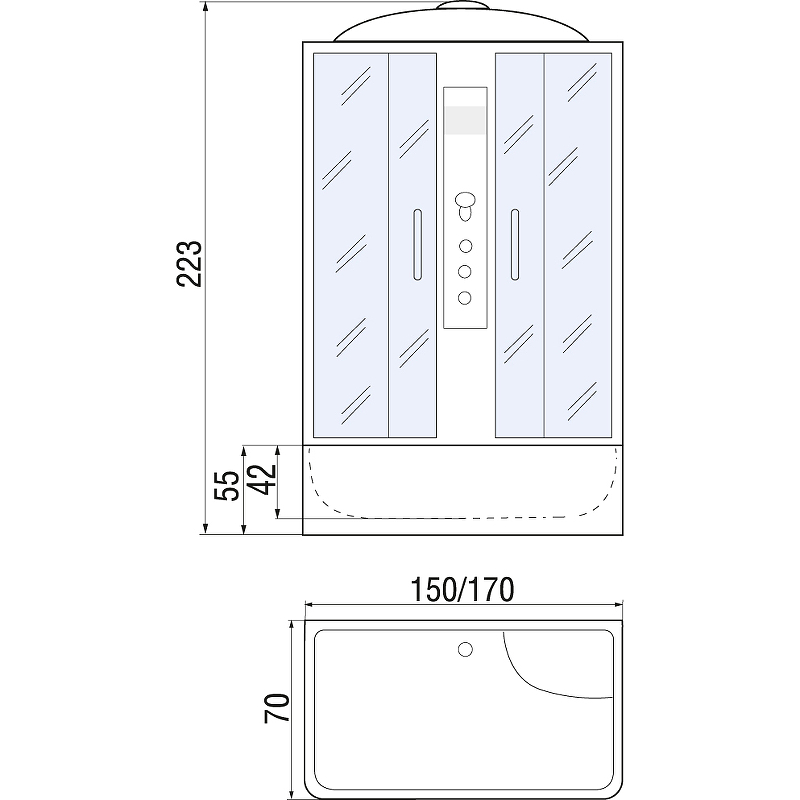 Душевой бокс River Sena 150x70 МТ 10000001803 превосходно сочетается в интерьере любой стилистической направленности за счет изысканных форм и плавных линий. Полотно двери выполнено из закаленного стекла толщиной 4 мм. На стенке, внутри душевой кабины установлена панель управления с сенсорным дисплеем. Кабина оснащена стеклянной полочкой, ручным душем, зеркалом. Данная модель имеет встроенные гидроизолированные динамики и радио.