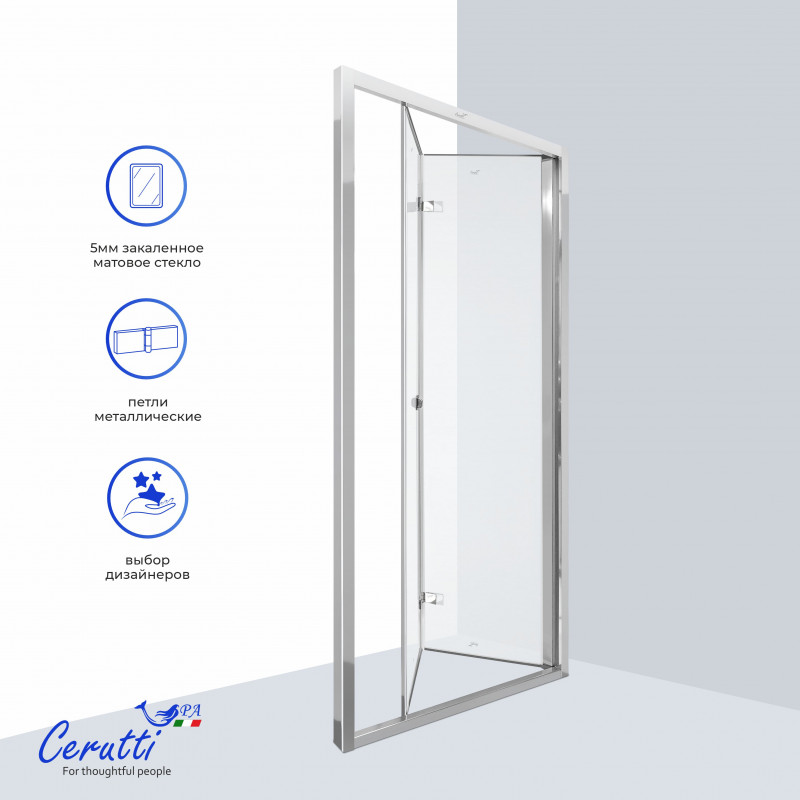 Преобразите свою ванную комнату с душевой дверью Cerutti SPA Bella D101F 11990 идеальное сочетание, функциональности и продуманной эргономики. Складная конструкция из двух секций экономит пространство,а премиальные материалы гарантируют долговечность и безопасность.