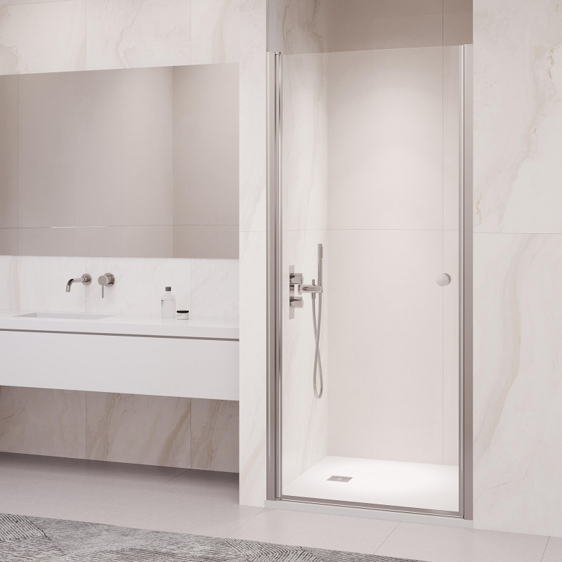 Душевая дверь изготовлена из стекла толщиной 6 мм, обеспечивающего превосходную прочность и долговечность. Прозрачный цвет стекла создает современный и открытый вид, а хромированный цвет профиля добавляет нотку элегантности.