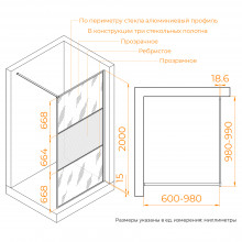 Душевая перегородка RGW Walk In WA-09B 06100910-224 100 черный/рифленое.