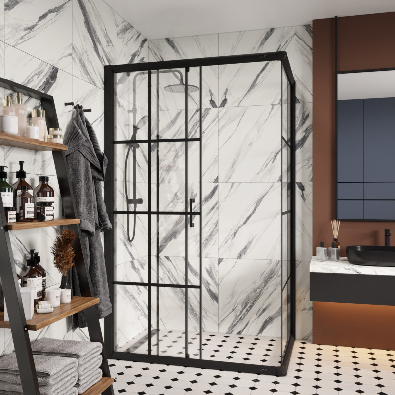 Душевой уголок Ceruttispa Muza120 N 11218 - модель из прозрачного стекла с черным принтом лаконично впишется в современный дизайн ванной комнаты. Внутри уголок достаточно просторный.