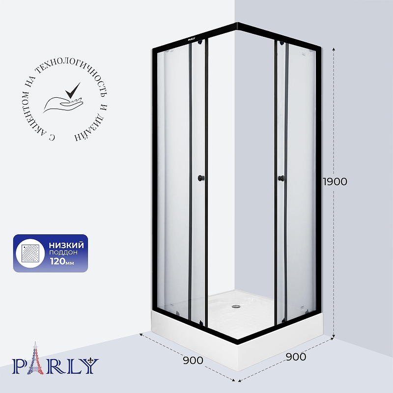 Душевой уголок Parly ZF911B 11286 с лаконичным дизайном, сочетает в себе черные профили и матовое стекло, этот тандем безусловно придаст пространству стильный вид.