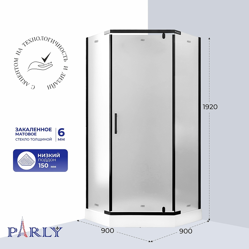 Прочная конструкция из закаленного стекла гарантирует максимально долгий срок эксплуатации душевого уголка.