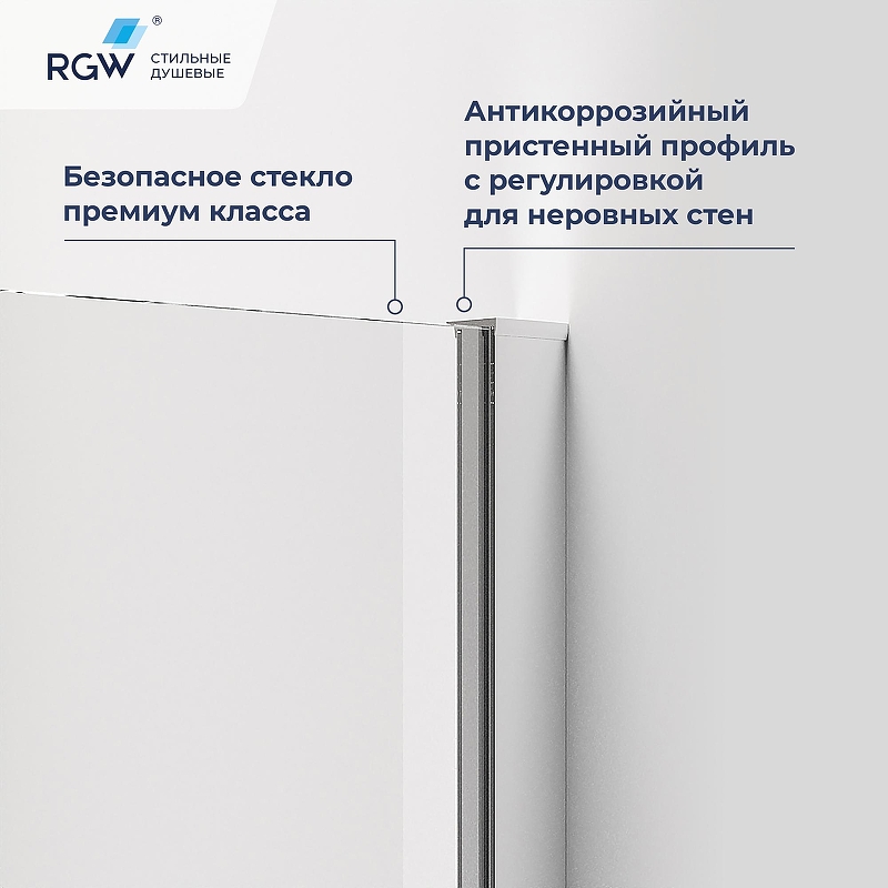 Душевой уголок RGW PA-83 оснащен регулируемым профилем, что позволяет настроить его под индивидуальные размеры и особенности помещения. Это обеспечивает максимальную гибкость и удобство при установке.