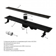Душевой лоток RGW Drain Leo-30B 60213060-04 с черной матовой решеткой.
