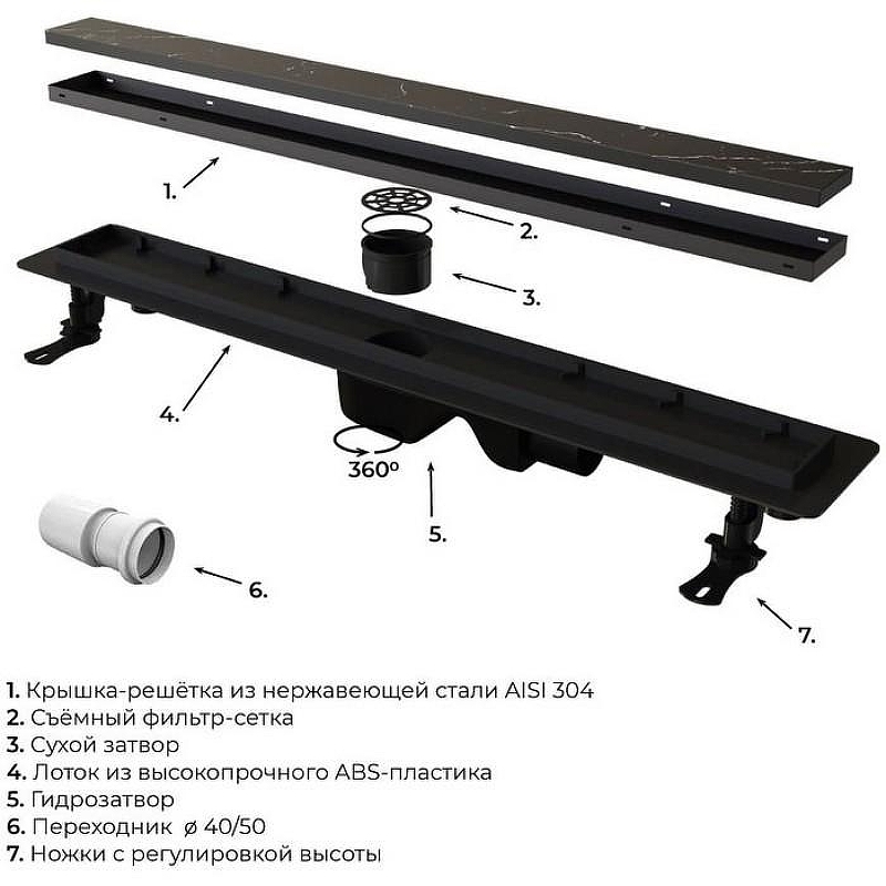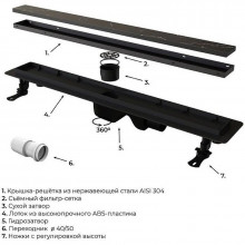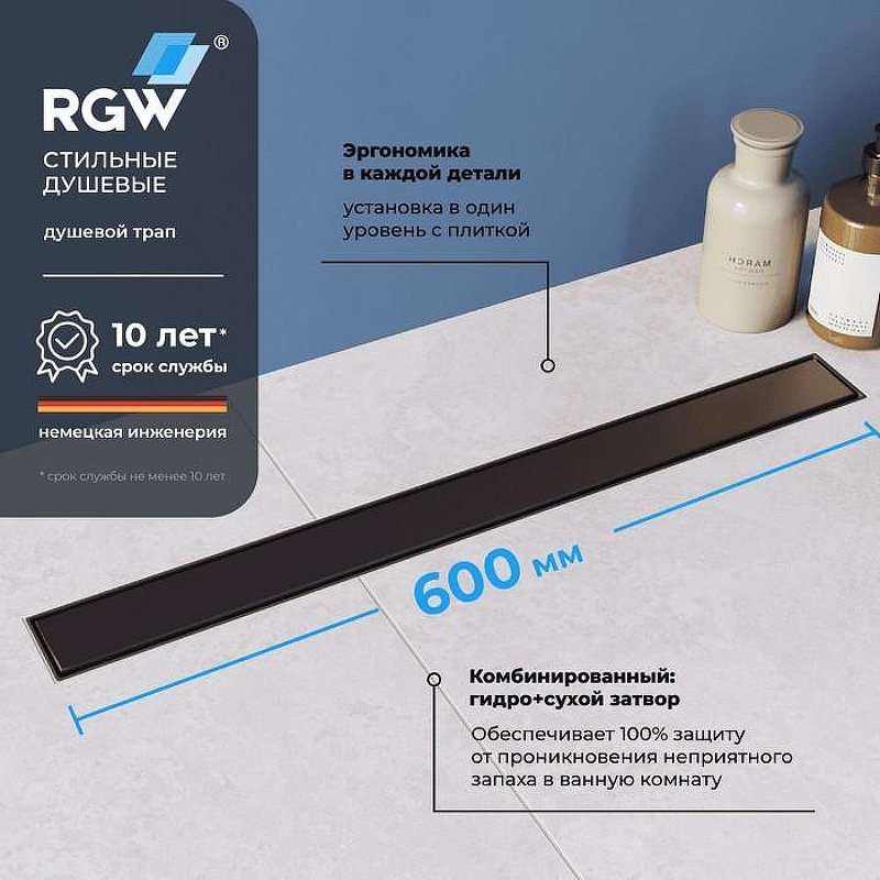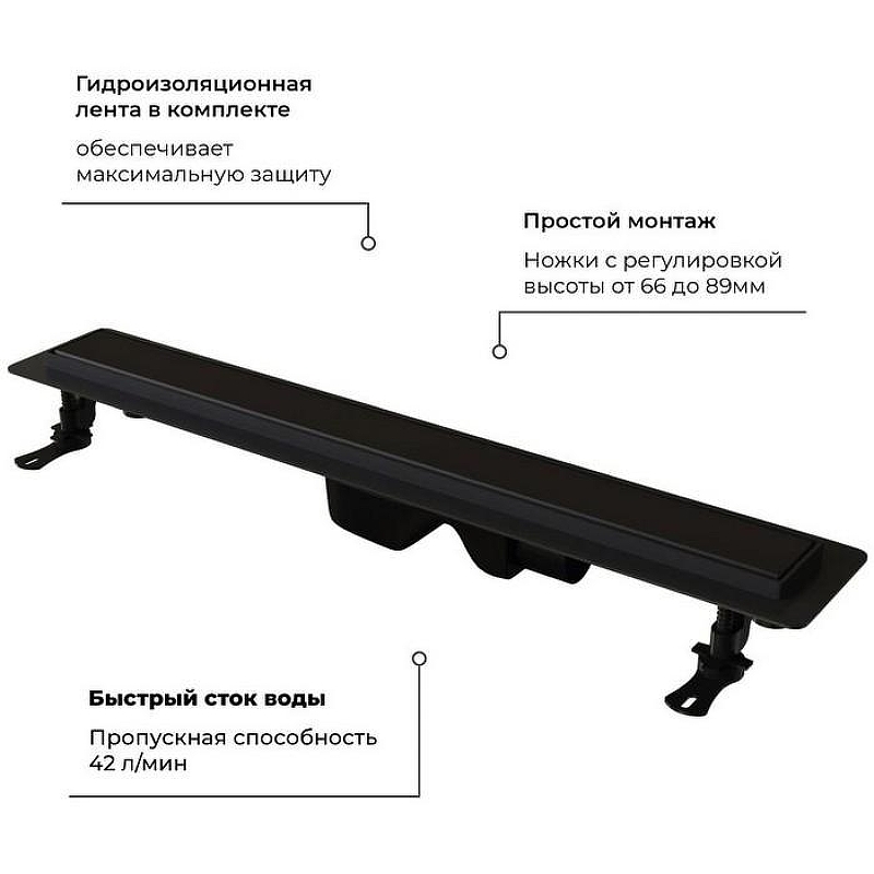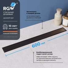 Душевой лоток RGW Drain Leo-31 60213160-04 с черной матовой решеткой / под плитку.