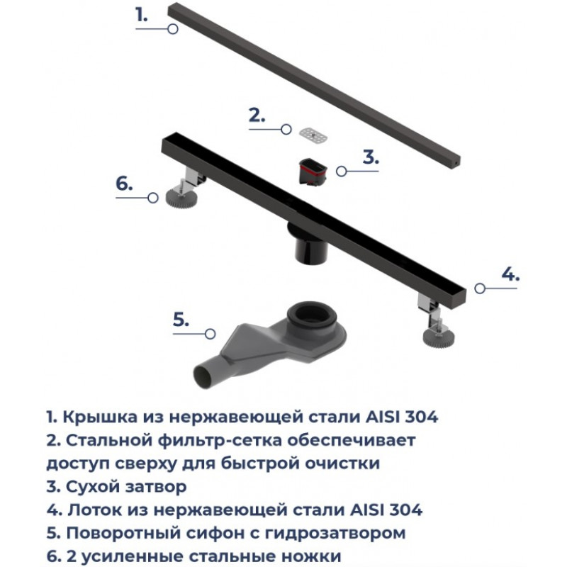 Душевой лоток RGW SDR-51B 76215160-04 черный матовый.