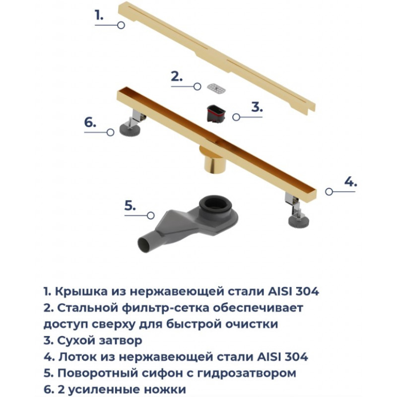 Душевой лоток RGW SDR-52Gb 76215280-06 золото браш.