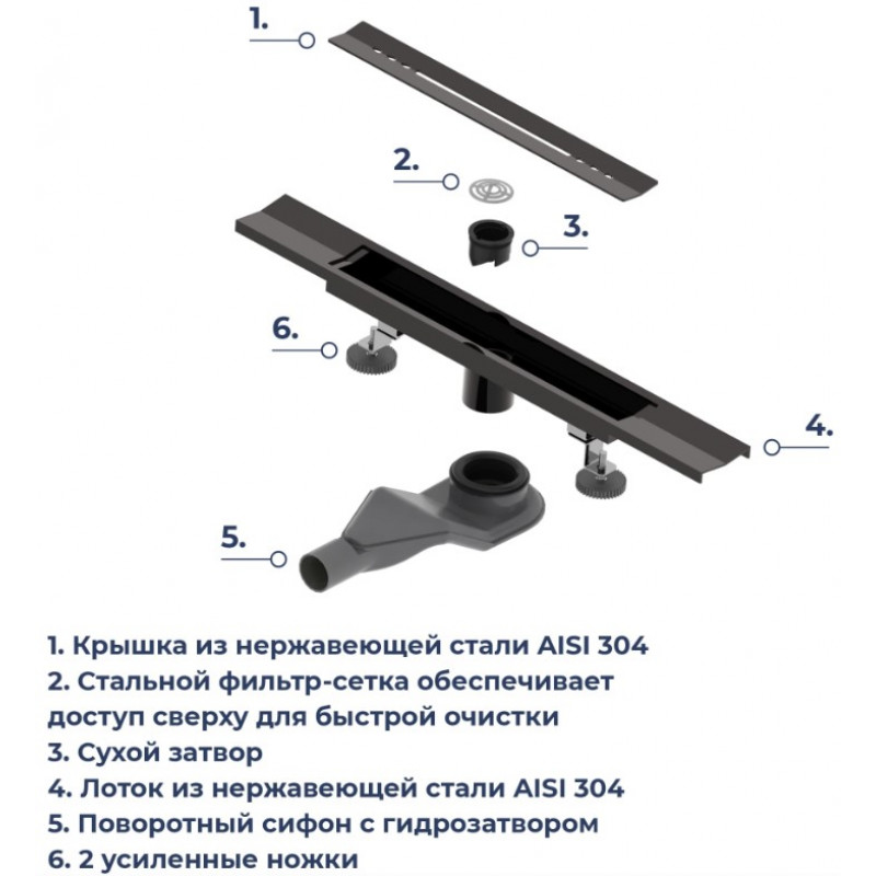 V-образный душевой лоток RGW SDR-53B 76215360-04 черный матовый.