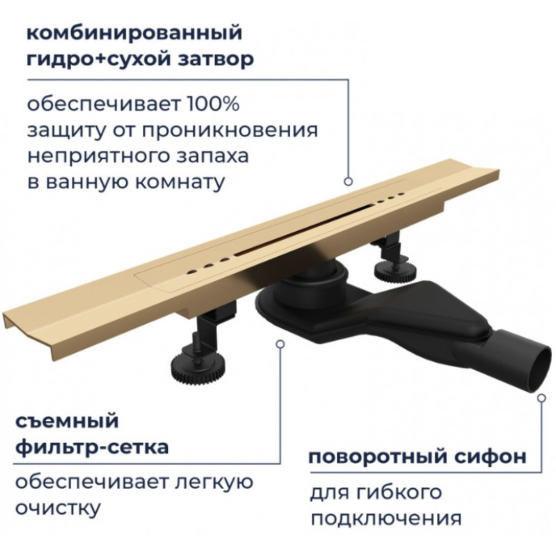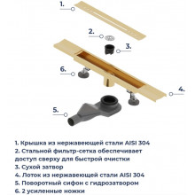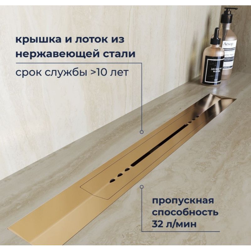 V-образный душевой лоток RGW SDR-53Gb 76215380-06 золото браш.