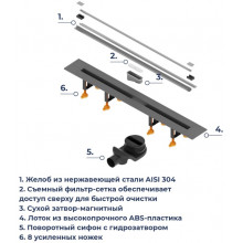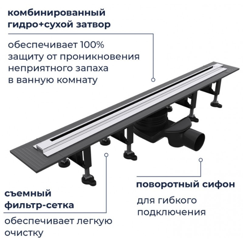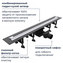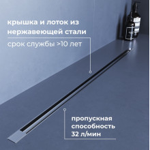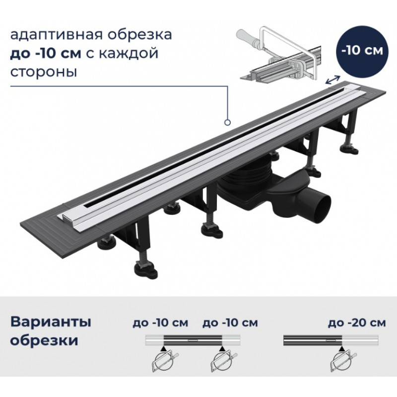 Отличительной особенностью душевого лотка RGW SDR – 55 является то, что на этапе монтажа общий размер лотка можно уменьшить на ~ 20 см. Конструкция модели на этапе монтажа позволяет обрезать лоток трапа и сливного желоба до 10 см с каждой стороны.
