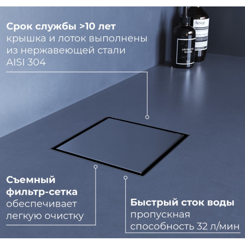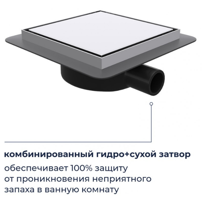 RGW SDR-10 79211000-01 – точечный душевой трап, благородная конструкция водосточной системы для душевых кабин, ванных комнат, бойлерных. Квадратный, толстостенный, стальной трап для душа в классическом дизайне. Популярен и удобен при монтаже. У него в комплекте до мелочей усовершенствованный сливной сифон, предназначенный для быстрого отвода воды в канализацию и устранения неприятных запахов после принятия душа. Он обеспечивает эффективный слив потока воды и является важным компонентом системы гидроизоляции. Устанавливаясь в пол, под керамическую плитку или мозаику, трап скрывает свои элементы под плиткой, оставляя на виду лишь универсальную (двухстороннюю) декоративную крышку, что создает стильный и современный вид ванной комнаты.
