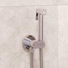 Самый миниатюрный комплект Гигиенического душа цвета хром со смесителем и краном держателем лейки, скрытого монтажа RGW SP-213, с прогрессивным поворотным картриджем, оснащён функцией «Умная блокировка». Гигиенический душ со смесителем круглой формы, инсталляционный, встройка в стену RGW SP-213 — это сантехническое оборудование, придуманное для соблюдения личной гигиены. Обычно его устанавливают возле унитаза, тем самым в небольших пространствах ванных комнат он заменяет биде. Первое, что приходит на ум, когда слышите «Гигиенический душ для унитаза (гигдуш — в бытовом разговоре)» — это моментальная гигиена интимной зоны сразу после туалета без использования туалетной бумаги.