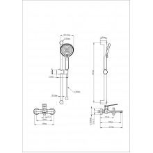 Комплектация: смеситель, душевой шланг, держатель для душа, душевая штанга, душевая лейка, эксцентрики, монтажный комплект