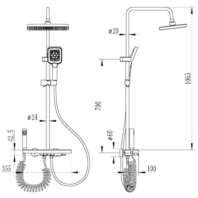 | Форма верхнего душа: | Квадратная |