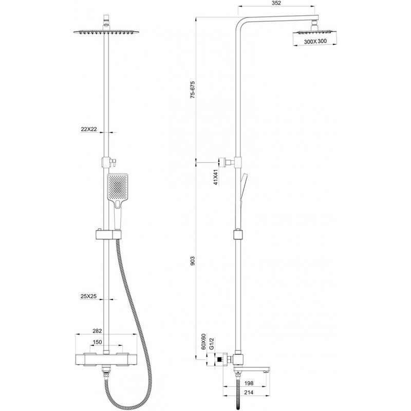 | Форма верхнего душа: | Квадратная |