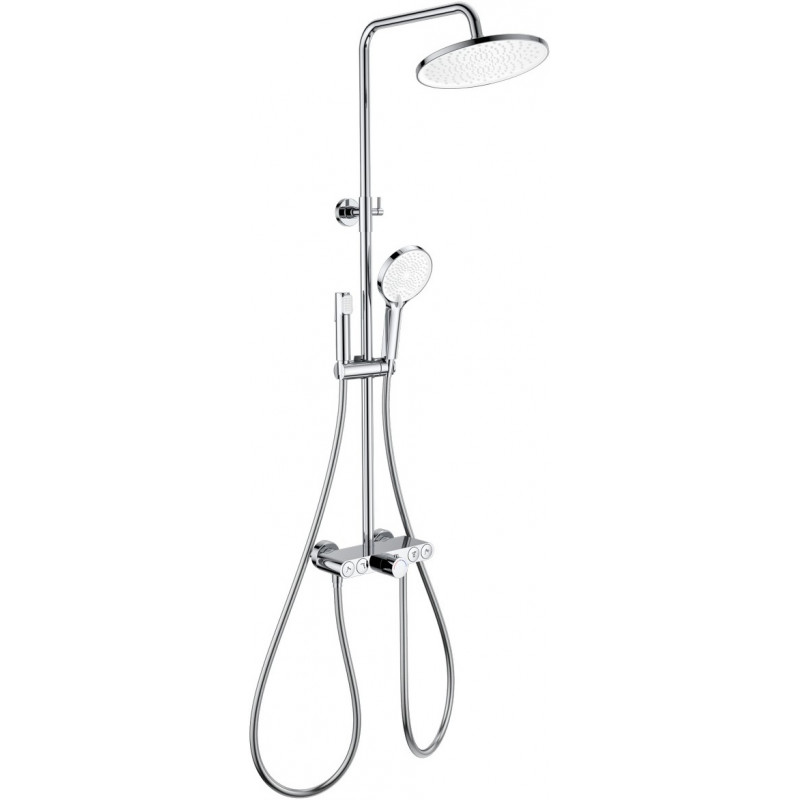 Комплектация: смеситель, душевой шланг, держатель для душа, душевая штанга, верхний душ, душевая лейка, эксцентрики, монтажный комплект.