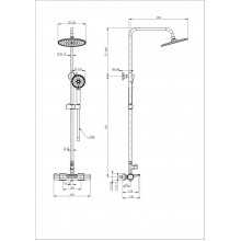 Комплектация: смеситель, душевой шланг, держатель для душа, душевая штанга, верхний душ, душевая лейка, эксцентрики, монтажный комплект.