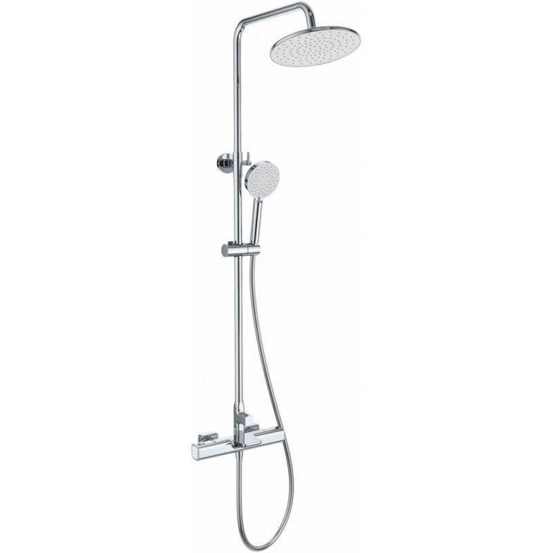 Комплектация: смеситель, душевой шланг, держатель для душа, душевая штанга, верхний душ, душевая лейка, эксцентрики, монтажный комплект.