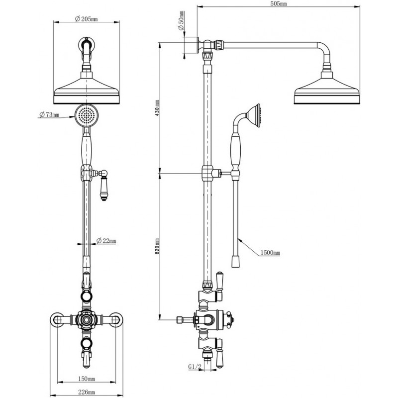 Душевая система Wonzon & Woghand Retro WW-B3041-BGG с термостатом темный графит.