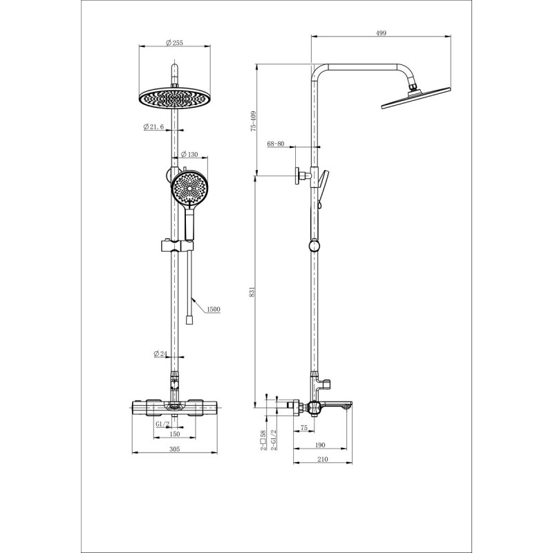 | Форма верхнего душа: | Круглая |
