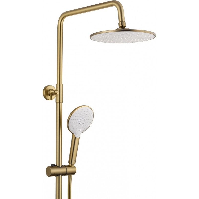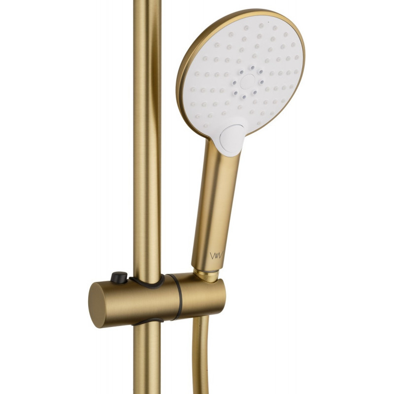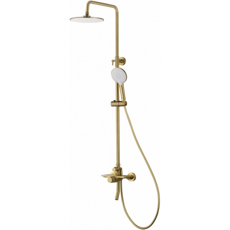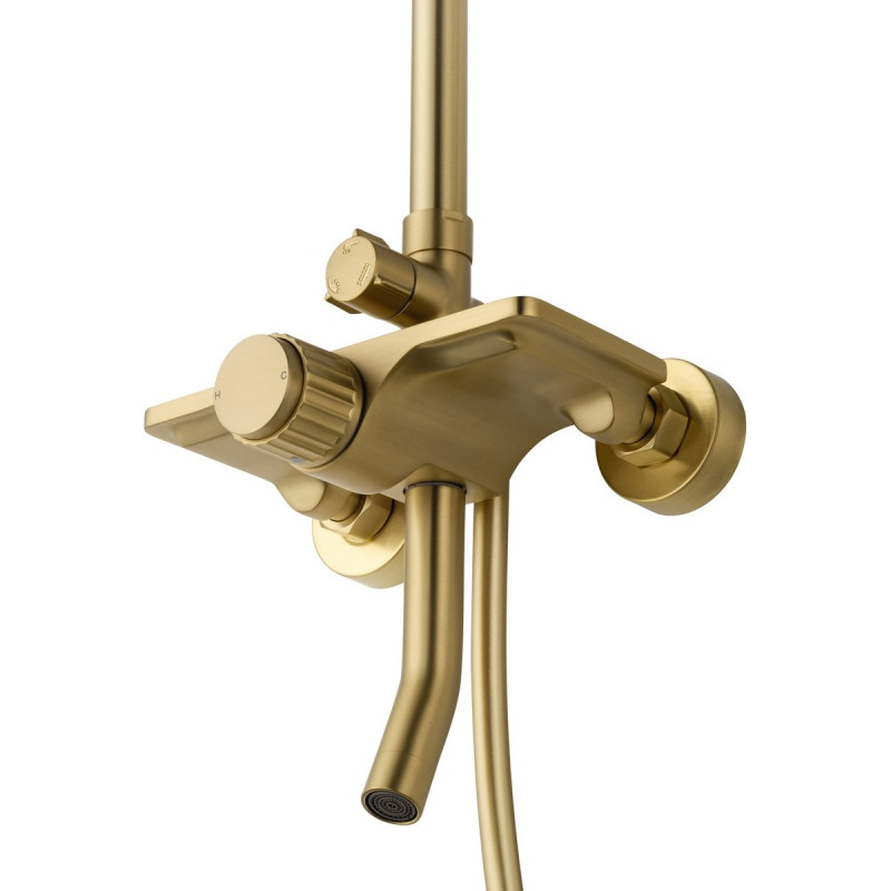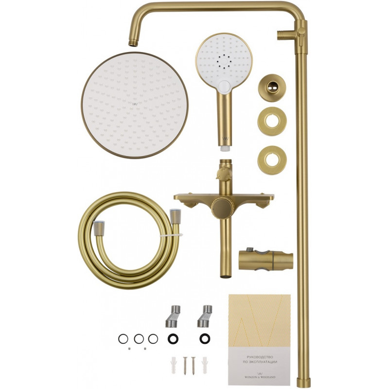 Душевая система Wonzon & Woghand Click WW-N3S962-BG представляет собой изысканное решение для современных ванных комнат. Эта душевая система выполнена в стильном и элегантном дизайне, который добавляет шарм и роскошь вашему пространству. Конструкция душевой системы включает брашированное золотое покрытие, которое не только придаёт изделию изысканный вид, но и защищает его от коррозии.