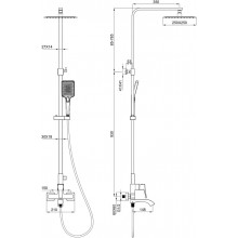 Комплектация: смеситель, душевой шланг, держатель для душа, душевая штанга, верхний душ, душевая лейка, эксцентрики, монтажный комплект