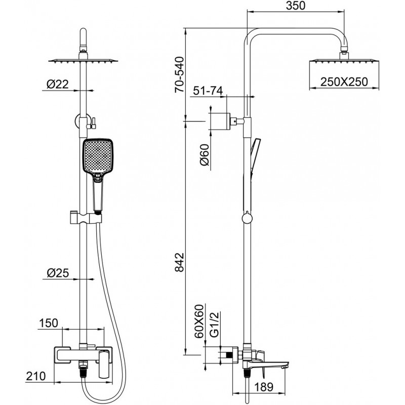 | Форма верхнего душа: | Квадратная |