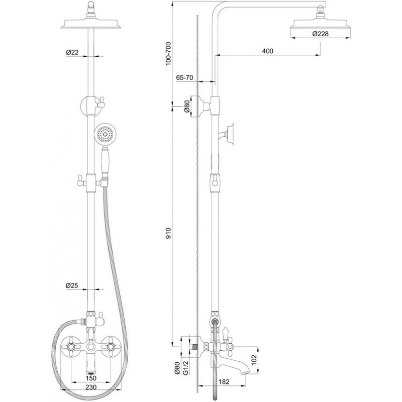 Душевая система Wonzon & Woghand Retro WW-88739020-CR хром