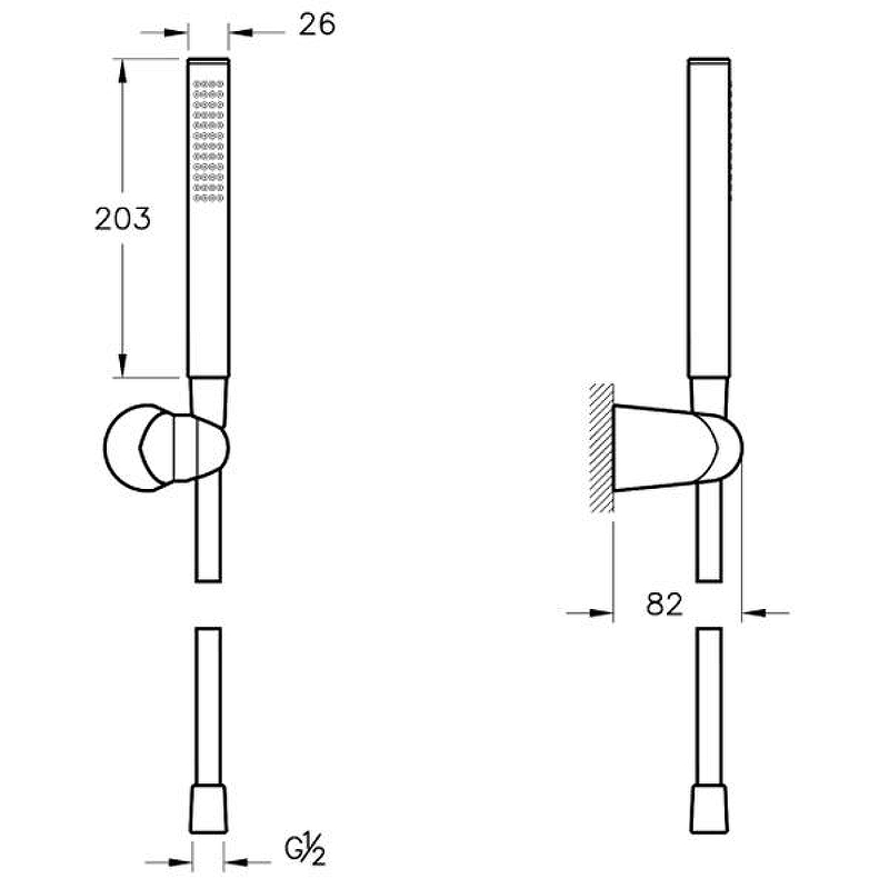 - Размер ручного душа (ШхВ): 26х203 мм.