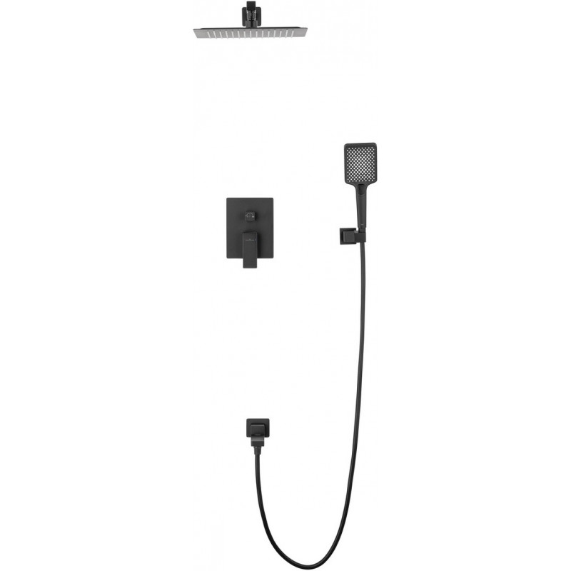 Комплектация: смеситель, душевой шланг, держатель для душа, верхний душ, душевая лейка, монтажный комплект.