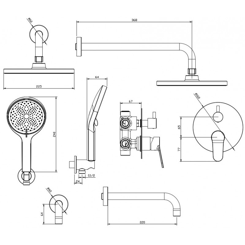 | Форма верхнего душа: | Круглая |