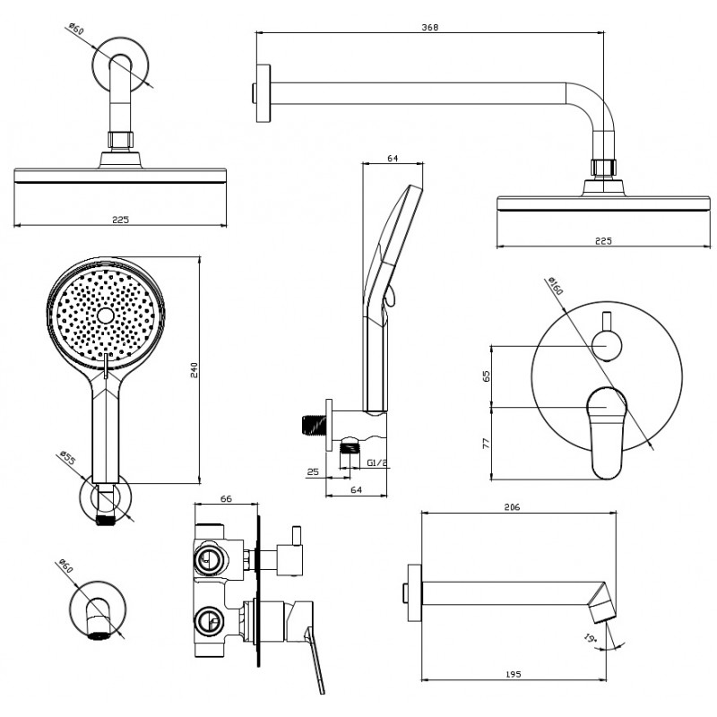 | Форма верхнего душа: | Круглая |
