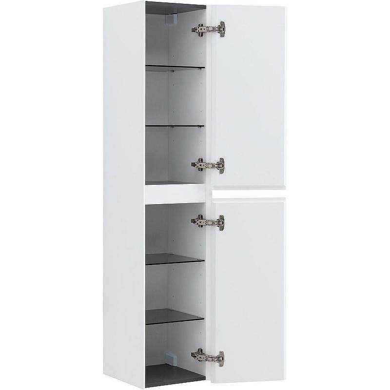 Особенностью данного пенала являются внутренние полки, выполненные из черного тонированного стекла. Это решение не только добавляет элегантности в общую композицию, но и визуально расширяет пространство, создавая эффект легкости. Шкаф-пенал Aquanet Альтера 34 белый матовый универсален в использовании: вы можете свободно изменять сторону открывания фасада, перенавесив его на противоположную сторону.