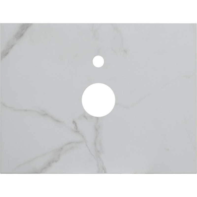 Столешница из керамогранита в цвете "белый мрамор с серыми прожилками" толщиной 10 мм предназначена для установки сверху на тумбу Nova Lite шириной 60 см. Керамогранит прекрасно подходит для помещений с повышенной влажностью. Это влагостойкий материал высокой плотности, благодаря чему ему не страшны агрессивные вещества. Он обладает также исключительной твердостью, что делает его стойким к истиранию. В столешнице предусмотрено отверстие для установки накладной раковины и вывода шлангов подводки воды. При установке смесителя на столешницу отверстие необходимо будет сделать самостоятельно в том месте, в котором удобно.