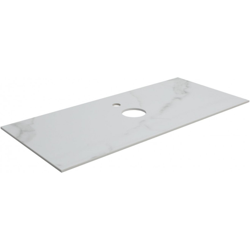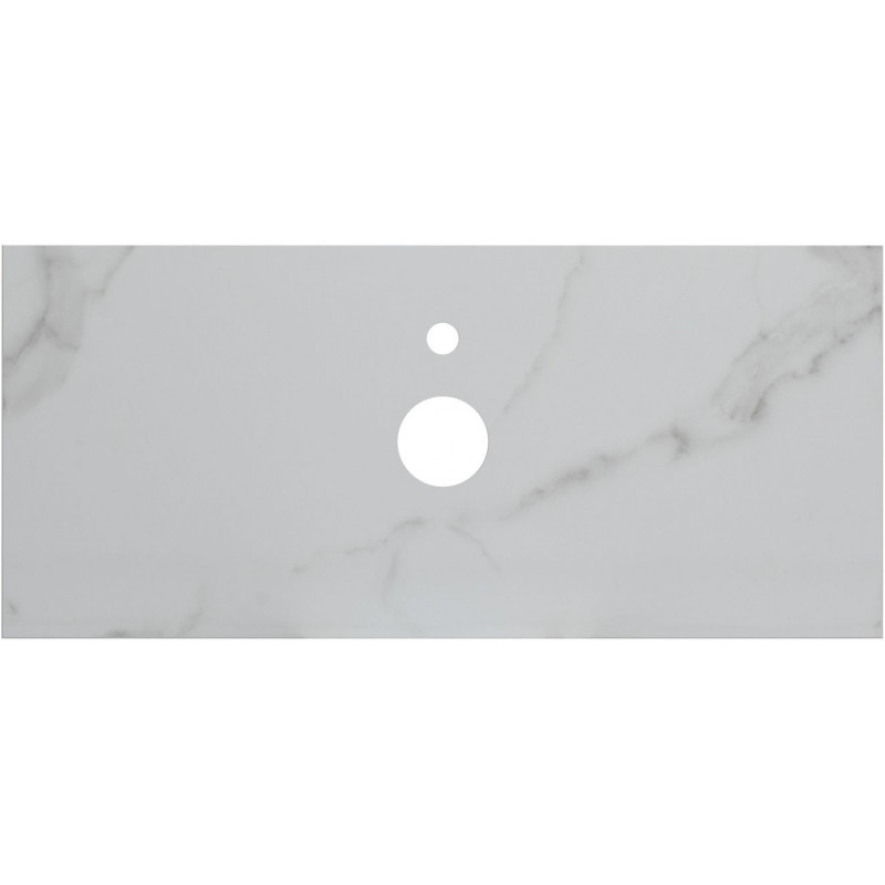 Столешница из керамогранита в цвете "белый мрамор с серыми прожилками" толщиной 10 мм предназначена для установки сверху на тумбу Nova Lite шириной 100 см. Керамогранит прекрасно подходит для помещений с повышенной влажностью. Это влагостойкий материал высокой плотности, благодаря чему ему не страшны агрессивные вещества. Он обладает также исключительной твердостью, что делает его стойким к истиранию. В столешнице предусмотрено отверстие для установки накладной раковины и вывода шлангов подводки воды. При установке смесителя на столешницу отверстие необходимо будет сделать самостоятельно в том месте, в котором удобно.