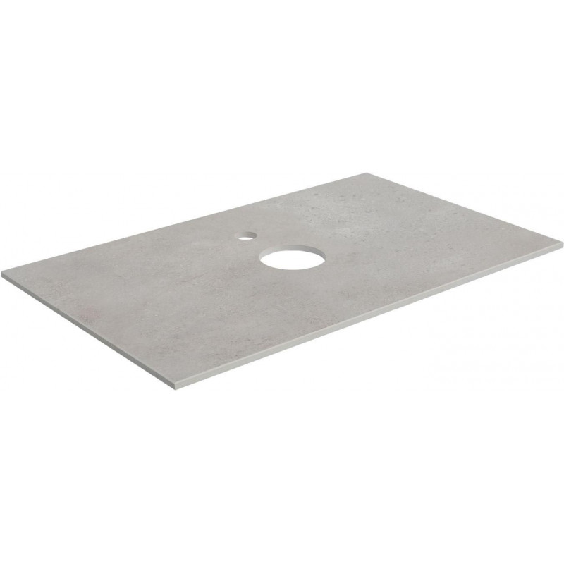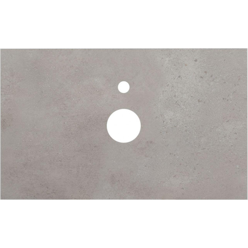 Столешница из керамогранита в сером цвете "под бетон" толщиной 10 мм предназначена для установки сверху на тумбу Nova Lite шириной 75 см. Керамогранит прекрасно подходит для помещений с повышенной влажностью. Это влагостойкий материал высокой плотности, благодаря чему ему не страшны агрессивные вещества. Он обладает также исключительной твердостью, что делает его стойким к истиранию. В столешнице предусмотрено отверстие для установки накладной раковины и вывода шлангов подводки воды. При установке смесителя на столешницу отверстие необходимо будет сделать самостоятельно в том месте, в котором удобно.