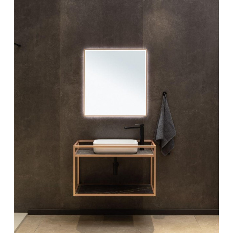 - Стильные каркасы тумб и пеналов выполнены из металла, имеют брашированную поверхность с нанесением цвета путем анодирования.