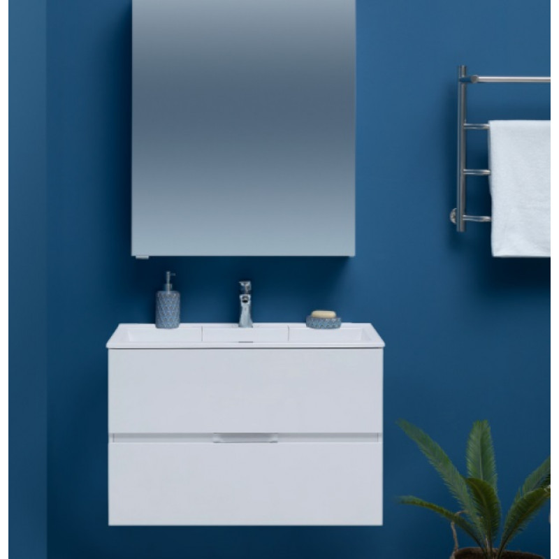 Тумба под раковину Aquanet Алвита 80 (цвет белый) придаст интерьеру ванной комнаты нотку особого очарования и уникальности, благодаря своей нестандартной красивой отделке. Покрытие имеет высокие эксплуатационные характеристики, в частности, влагонепроницаемость, прочность и простоту в уходе. Современный дизайн демонстрирует аккуратный минимализм геометрически четких форм, где основная идея подчинена максимальной функциональности. Вместительная тумба шириной 80 см с верхним и нижним выдвижными ящиками создает дополнительное пространство, где будут надежно скрыты от влаги банные принадлежности. Ящики тумбы закрываются легко и бесшумно, благодаря механизму доводчика.