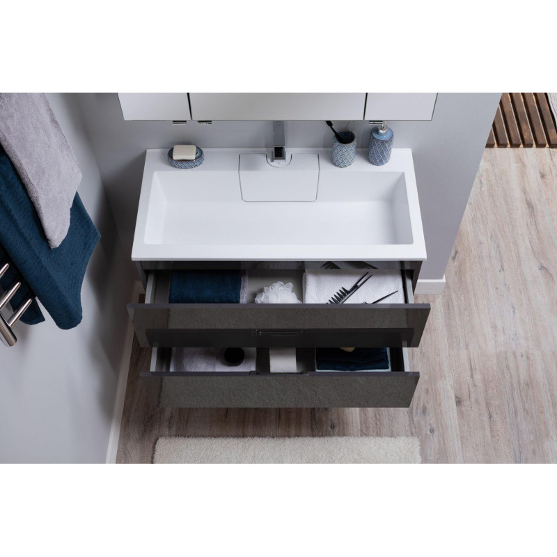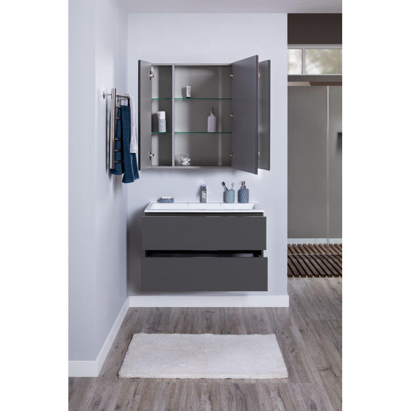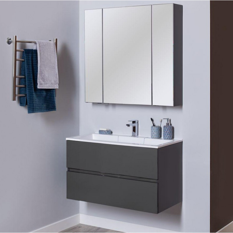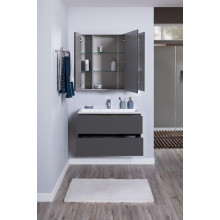 Тумба под раковину Акванет Алвита в цвете "серый антрацит" шириной 90 см придаст интерьеру ванной комнаты нотку особого очарования и уникальности, благодаря своей нестандартной красивой отделке. Покрытие имеет высокие эксплуатационные характеристики, в частности, влагонепроницаемость, прочность и простоту в уходе. Современный дизайн демонстрирует аккуратный минимализм геометрически четких форм, где основная идея подчинена максимальной функциональности. Вместительная тумба с верхним и нижним выдвижными ящиками создает дополнительное пространство, где будут надежно скрыты от влаги банные принадлежности. Ящики тумбы закрываются легко и бесшумно, благодаря механизму доводчика.