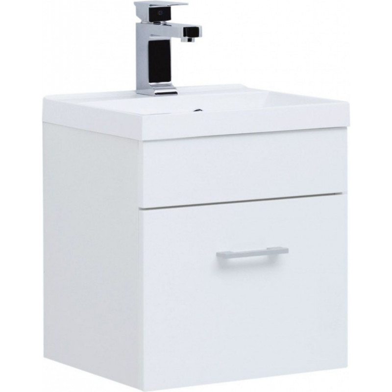 Компактная тумба под раковину Нота 40 крепится на удобной высоте на стену ванной комнате. Подвесная конструкция делает ее визуально легкой, добавляющей позитива в облик интерьера, а отсутствие ножек облегчает уборку помещения. Раковина выполнена из материала «нового поколения» — литьевого мрамора. Простые формы, нейтральный цвет и безупречное удобство в пользовании сделали гарнитур хитом среди линеек бренда Aquanet. Тумба обеспечивает место для хранения банных принадлежностей в двух глубоких ящиках. Она представлена как часть набора мебели для ванной комнаты Акванет Нота 40, но может быть приобретена и отдельно.