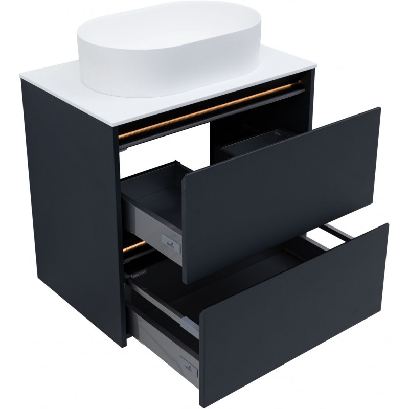Тумба под накладную раковину Allen Brau из коллекции «Activity» представляет собой элегантное и функциональное дополнение для вашей ванной комнаты. Эта модель тумбы, шириной 70 см, имеет привлекательный темно-серый цвет, который придаст интерьеру современный шарм. Подвесная конструкция тумбы под раковину обеспечивает легкость и простоту монтажа, а материал корпуса ВЛДСП и материал фасада МДФ гарантируют прочность и долговечность. Матовое эмалевое покрытие корпуса и фасада добавляет изысканности и легкости в уходе. Корпус мебели на верхнем торце фасада имеет металлический декоративный профиль в цвете черный браш. Тумба комплектуется подсветкой в теплом тоне и специальным магнитным датчиком, который позволяет использовать подсветку в 2-х режимах: «декоративная подсветка» - всегда включена и «функциональная подсветка» - включается при открывании ящика. Детали фасада и декоративного профиля установленного на корпусе имеют фрезеровку и наклон 45 градусов, что делает открывание ящиков очень комфортным. Фурнитура тумбы для раковины оснащена доводчиком для плавного закрывания, а два выдвижных ящика обеспечат удобное хранение ваших ванных принадлежностей. Allen Brau Activity — это сочетание стиля, качества и удобства, которое сделает вашу ванную комнату еще более привлекательной и функциональной.