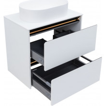 Тумба под накладную раковину Allen Brau из коллекции «Activity» представляет собой элегантное и функциональное дополнение для вашей ванной комнаты. Эта модель тумбы, шириной 70 см, имеет привлекательный белый цвет, который придаст интерьеру современный шарм. Подвесная конструкция тумбы под раковину обеспечивает легкость и простоту монтажа, а материал корпуса ВЛДСП и материал фасада МДФ гарантируют прочность и долговечность. Матовое эмалевое покрытие корпуса и фасада добавляет изысканности и легкости в уходе. Корпус мебели на верхнем торце фасада имеет металлический декоративный профиль в цвете черный браш. Тумба комплектуется подсветкой в теплом тоне и специальным магнитным датчиком, который позволяет использовать подсветку в 2-х режимах: «декоративная подсветка» - всегда включена и «функциональная подсветка» - включается при открывании ящика. Детали фасада и декоративного профиля установленного на корпусе имеют фрезеровку и наклон 45 градусов, что делает открывание ящиков очень комфортным. Фурнитура тумбы для раковины оснащена доводчиком для плавного закрывания, а два выдвижных ящика обеспечат удобное хранение ваших ванных принадлежностей. Allen Brau Activity — это сочетание стиля, качества и удобства, которое сделает вашу ванную комнату еще более привлекательной и функциональной.