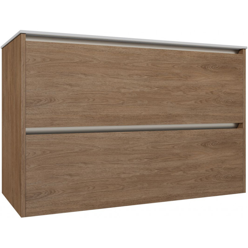 Тумба под накладную раковину Allen Brau из коллекции «Activity» представляет собой элегантное и функциональное дополнение для вашей ванной комнаты. Эта модель тумбы, шириной 100 см, имеет привлекательный светло-коричневый цвет, который придаст интерьеру современный шарм. Подвесная конструкция тумбы под раковину обеспечивает легкость и простоту монтажа, а материал корпуса и фасада МДФ гарантируют прочность и долговечность. Шпонированное покрытие корпуса и фасада добавляет изысканности и легкости в уходе. Корпус мебели на верхнем торце фасада имеет металлический декоративный профиль в цвете олива. Тумба комплектуется подсветкой в теплом тоне и специальным магнитным датчиком, который позволяет использовать подсветку в 2-х режимах: «декоративная подсветка» - всегда включена и «функциональная подсветка» - включается при открывании ящика. Детали фасада и декоративного профиля установленного на корпусе имеют фрезеровку и наклон 45 градусов, что делает открывание ящиков очень комфортным. Фурнитура тумбы для раковины оснащена доводчиком для плавного закрывания, а два выдвижных ящика обеспечат удобное хранение ваших ванных принадлежностей. Allen Brau Activity — это сочетание стиля, качества и удобства, которое сделает вашу ванную комнату еще более привлекательной и функциональной.