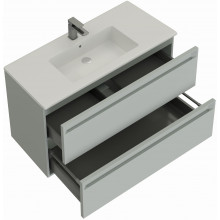 Тумба оснащена специальной пластиковой рамой, которая надежно защищает вырез под сифон, служит органайзером и позволяет закрепить дополнительный набор контейнеров для хранения.