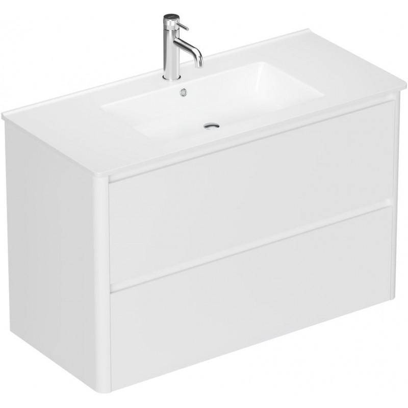 Коллекция современной подвесной мебели с мягкими скругленными формами, безупречной эмалью в шести цветах и строгой геометрией, которая создает универсальное решение для ванной комнаты в любом стиле - от сканди до неоклассики