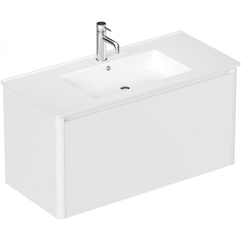Коллекция современной подвесной мебели с мягкими скругленными формами, безупречной эмалью в шести цветах и строгой геометрией, которая создает универсальное решение для ванной комнаты в любом стиле - от сканди до неоклассики