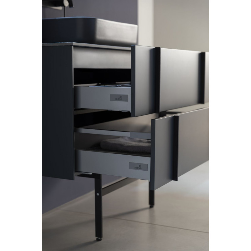 Выдвижные ящики с металлическими боковыми стенками в цвете серый металлик.