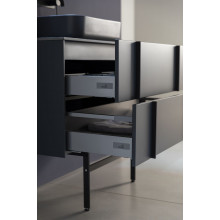 - Выдвижные ящики с металлическими боковыми стенками в цвете серый металлик.