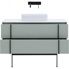 Тумбы оснащены специальной пластиковой рамой, которая надежно защищает вырез под сифон, служит органайзером и позволяет закрепить дополнительный набор контейнеров для хранения.